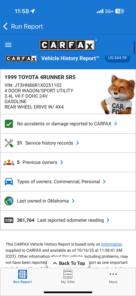1999 Toyota 4Runner SR5 4WD